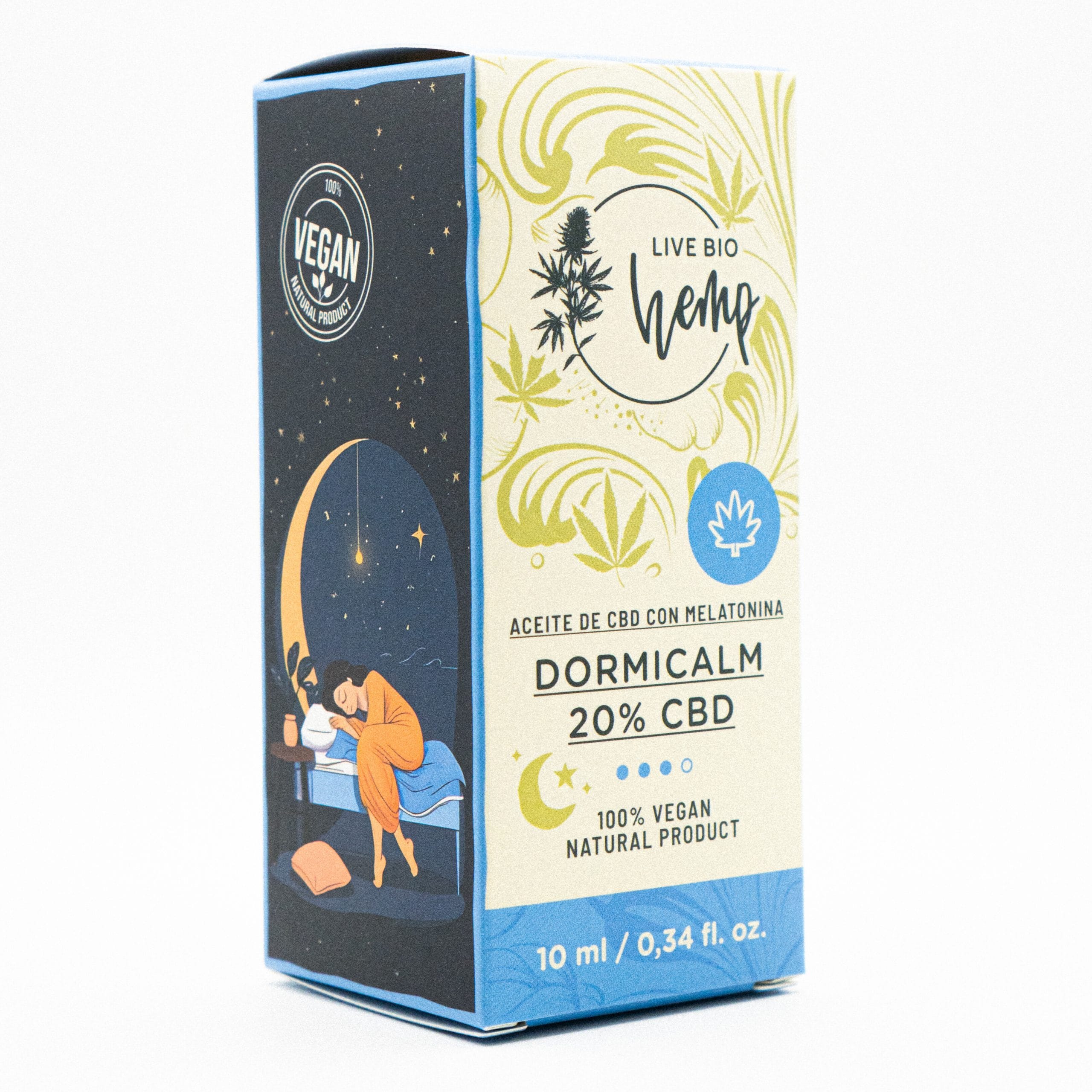 El aceite Dormicalm es un aceite Full Spectrum específicamente para las personas que sufren insomnio. Este aceite contiene cáñamo en su forma más pura y sin procesar. Asimismo, este extracto contiene todos los cannabinoides presentes en el cáñamo como el CBD, CBDA, CBN, CBC, CBGA, CBG, CBDVA y CBDV conteniendo el mayor porcentaje en CBD, CBN y CBG. Este aceite contiene una concentración del 10 % de CBD (Cannabidiol) + 5% de CBN + 5% CBG + 3% MELATONINA + 0.2% LINALOOL en 10 ml y está mezclado con aceite orgánico MCT (aceite de coco).