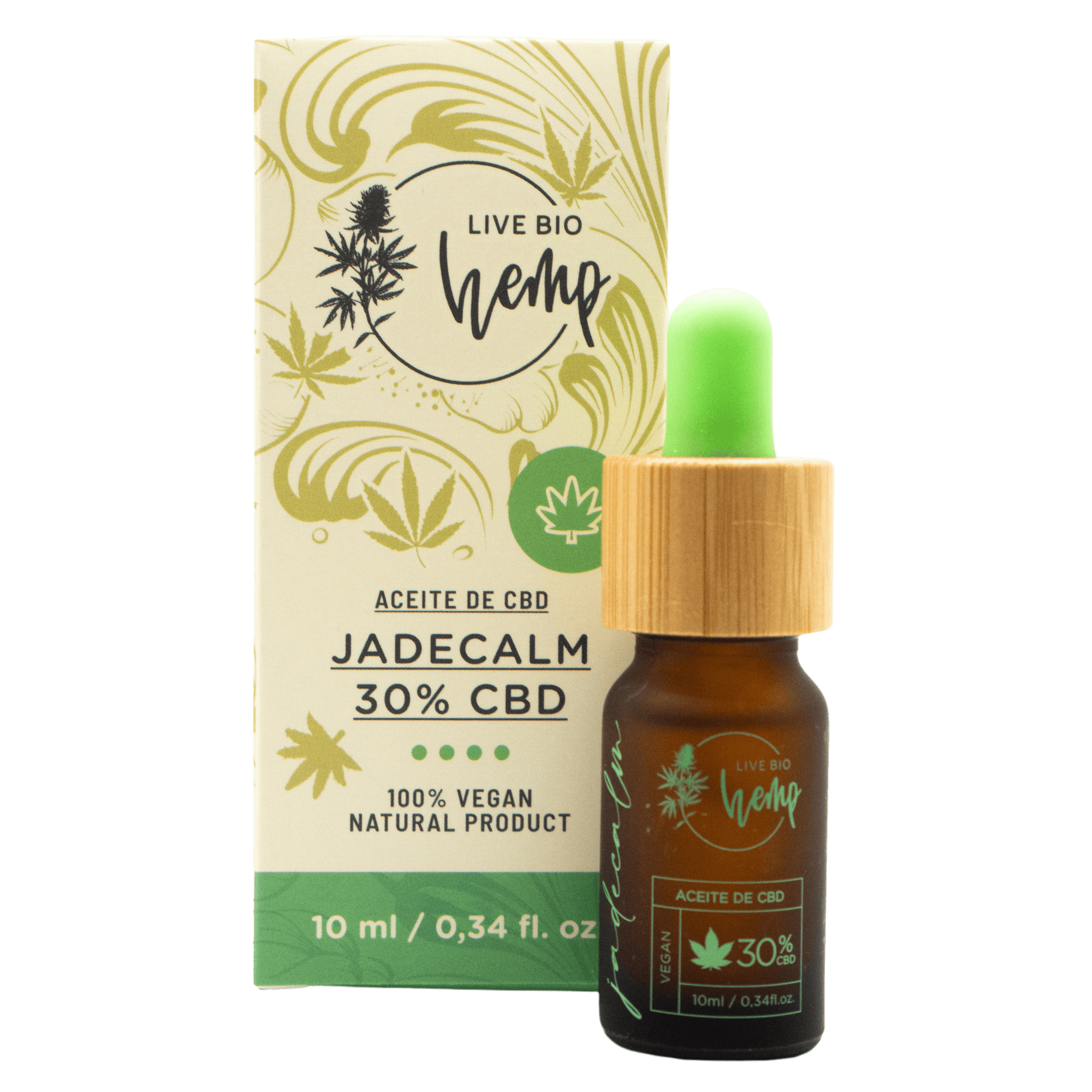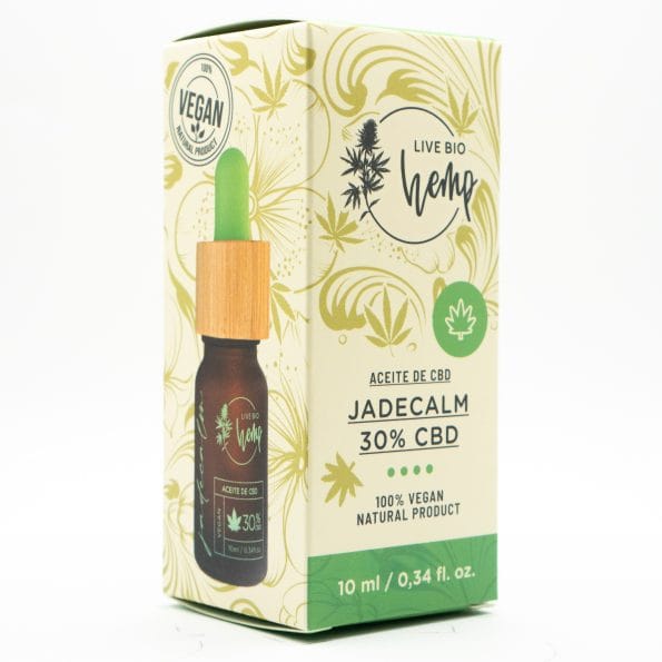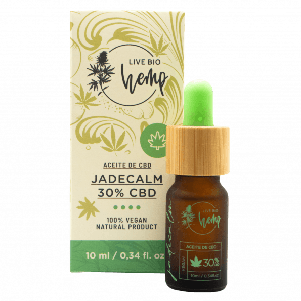 El aceite JADECALM es un aceite full spectrum, esto quiere decir que es un extracto que contiene cáñamo en su forma más pura y sin procesar. Asimismo, este extracto contiene todos los cannabinoides presentes en el cáñamo como el CBD, CBDA, , CBN, CBC, CBGA, CBG, CBDVA y CBDV conteniendo el mayor porcentaje en CBD. Este aceite contiene una concentración del 30 % de CBD (Cannabidiol) en 10 ml y está mezclado con 70 % de aceite orgánico MCT (aceite de coco).
